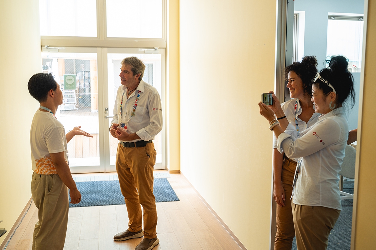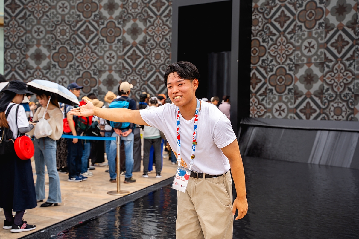 私たちは、パビリオンスタッフとの交流はあまりありません。ただ、スタッフ証を身につけているので、他のパビリオンに行ったときに「おつかれさま」と言葉を交わすなど、スタッフ同士としてフランクに話せる感じがあります。