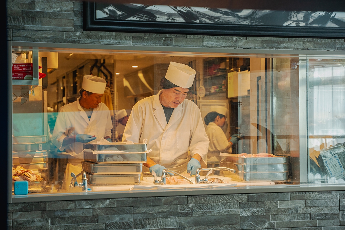 今回訪れたのは、会場内のウォータープラザマーケットプレイス西にある近畿大学水産研究所のレストランと、マルタパビリオン。レストランとパビリオンでは仕事内容も異なりますが、それぞれどのように働いているのでしょうか?