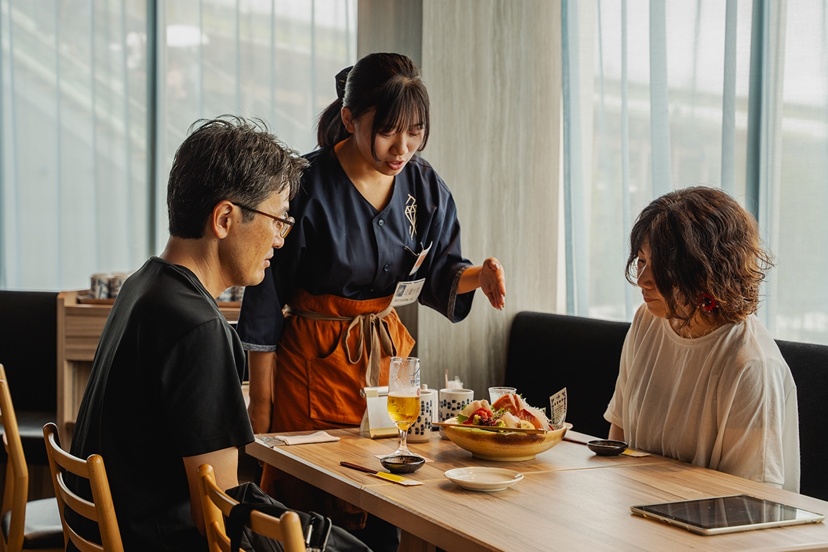 「近大卒の魚と紀州の恵み 近畿大学水産研究所」は、世界で初めて完全養殖に成功した「近大マグロ」を始め、日本における真鯛の養殖の火付け役となった「近大マダイ」、2種類の魚の良いところを掛け合わせて養殖した「サラブレッド魚※」などを提供する、養殖魚専門のレストランです。