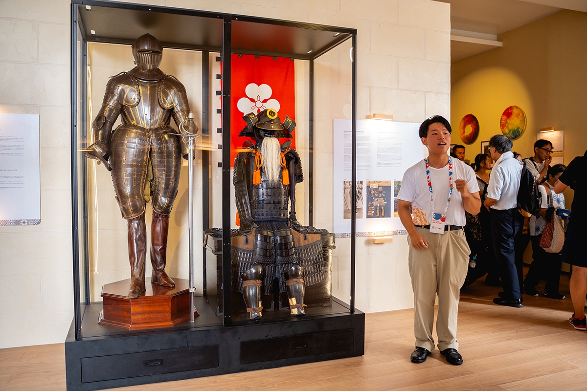 パビリオンで働くまではマルタ共和国に対して、「隠れた人気留学先として注目されている」というイメージしか持っていなかったのですが、実は日本と古くから関わりがある国だということを知りました。パビリオンに入ると最初に甲冑が展示されています。これは、1862年に福沢諭吉ら「文久遣欧使節団」が感謝の意をもって贈ったとされています。当時ロンドン万博へ向かう使節団がマルタ共和国を経由したそうで、マルタの人々から受けたおもてなしに感銘を受けたそうなんです。