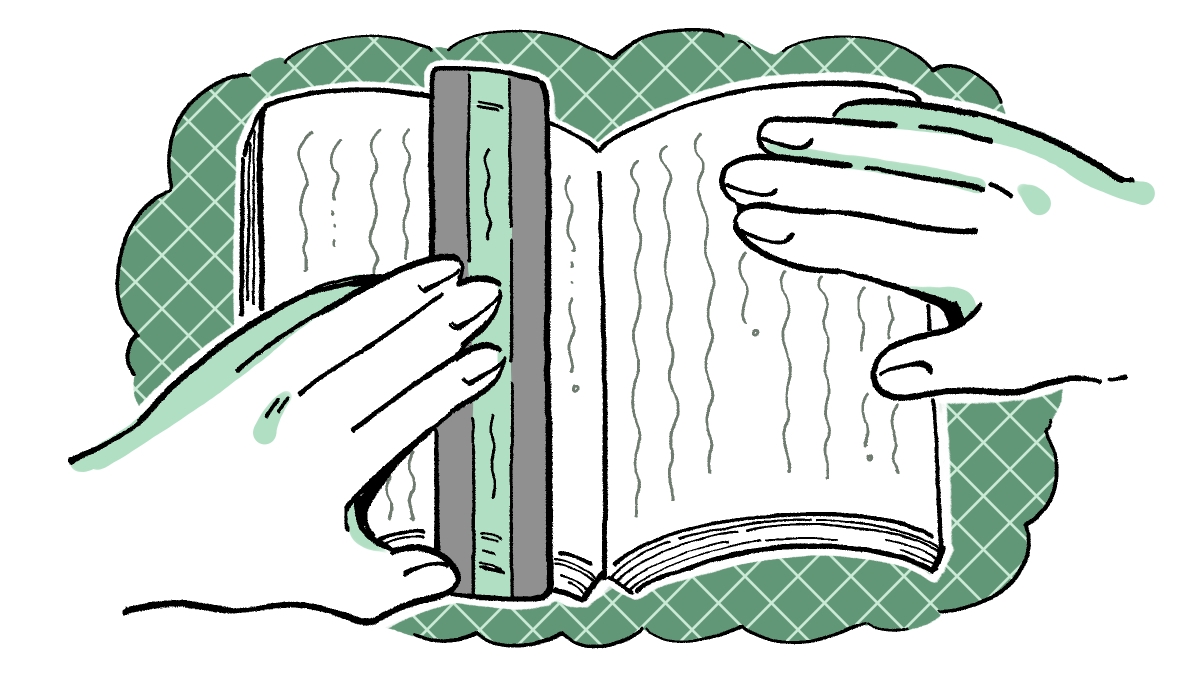 どうしても縦書きの文章を読まなければいけないときには、工夫をしています。本に挟んでいるしおりやページの端を使って、いま読んでいる行以外を隠しながら読むとうまく読めるんです。紙の本でしかできない方法ですが。