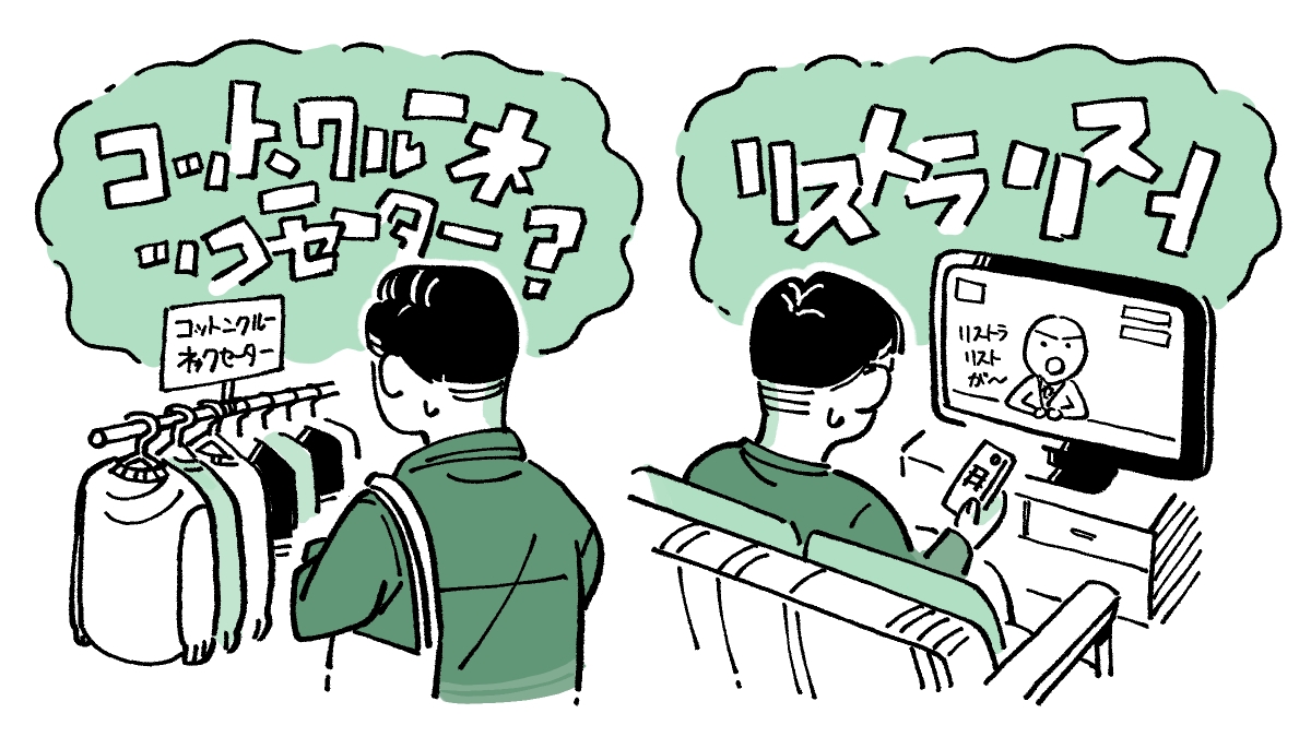 まさにその「区切り」の問題で、僕は特にカタカナが苦手です。ただの記号の羅列に見えてしまって……。例えば服屋でよく見かける「コットンクルーネックセーター」とか、その昔、企業で大規模なリストラ(人員削減)が行われた時にニュースなどで目にした「リストラリスト」とか、何回読んでもどこで区切ればいいのかさっぱり分かりません(笑)。