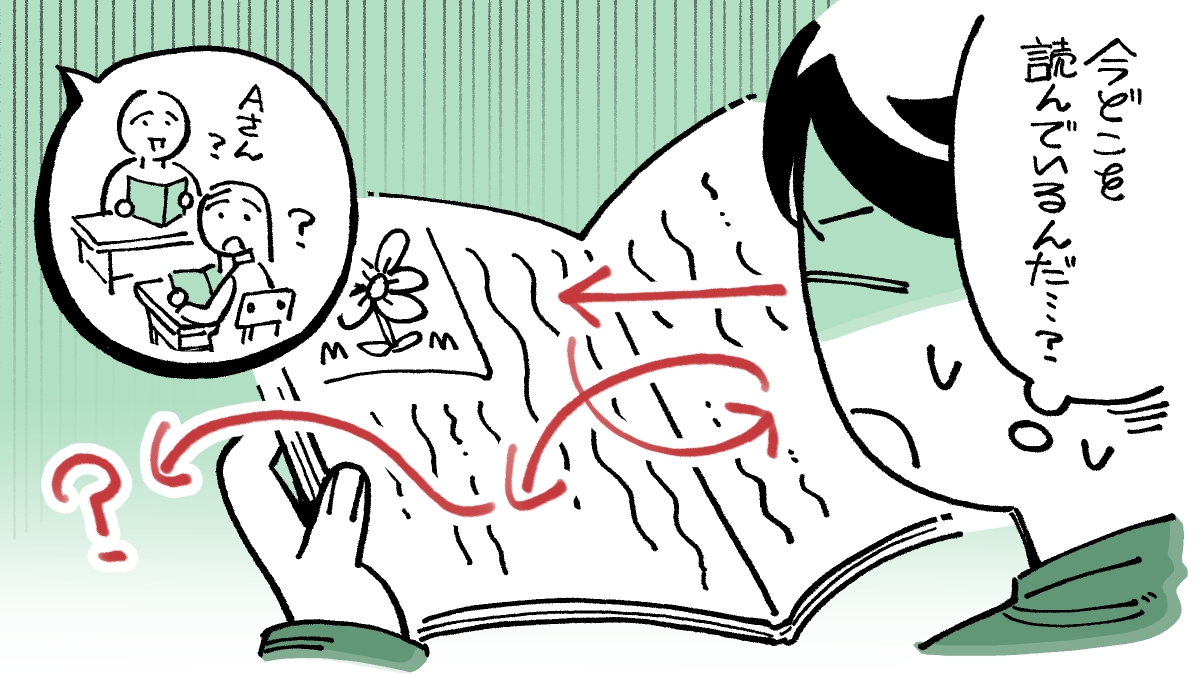まさにそうです! 「行が迷子」状態で、子どもの頃は国語の教科書を音読させられるのが恐怖でした。みんながどこを読んでいるのかを目で追えないし、自分が読む番になっても、同じ行を何度も読んでしまったり、隣の行にワープしてしまったりして、話の内容が全く頭に入ってこないんです。