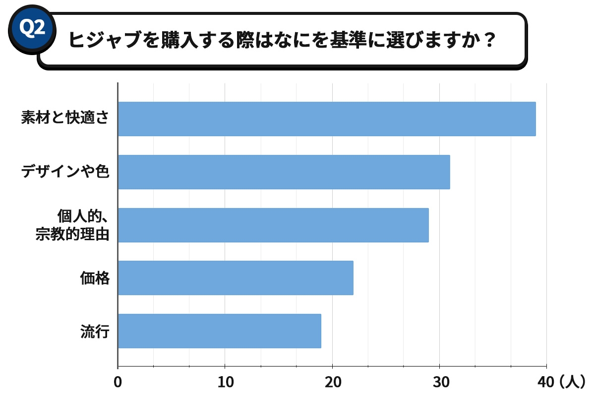 また、「普段どこでヒジャブを購入していますか?」という質問に対して、多くの人がネットショッピングで購入していると回答。ヒジャブ専門のオンラインショップも多く、自宅にいながら色や素材をじっくり比べられる点が人気のようです。