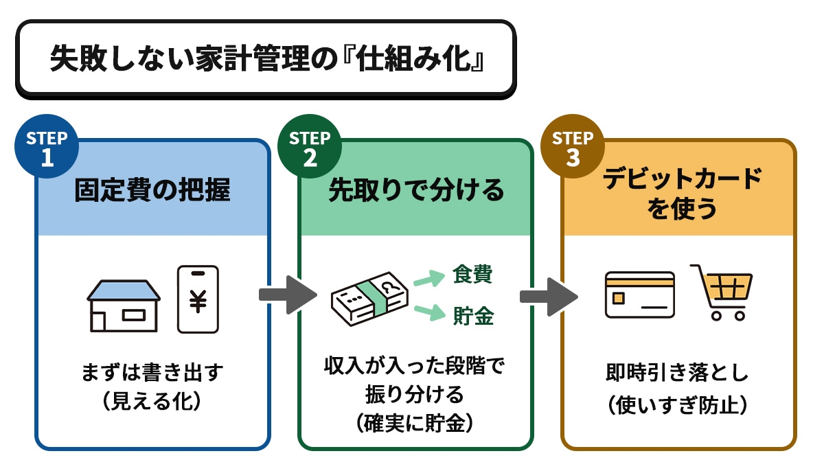 ②生活費は“先に分ける”(食費・交際費・貯蓄を最初に振り分け)