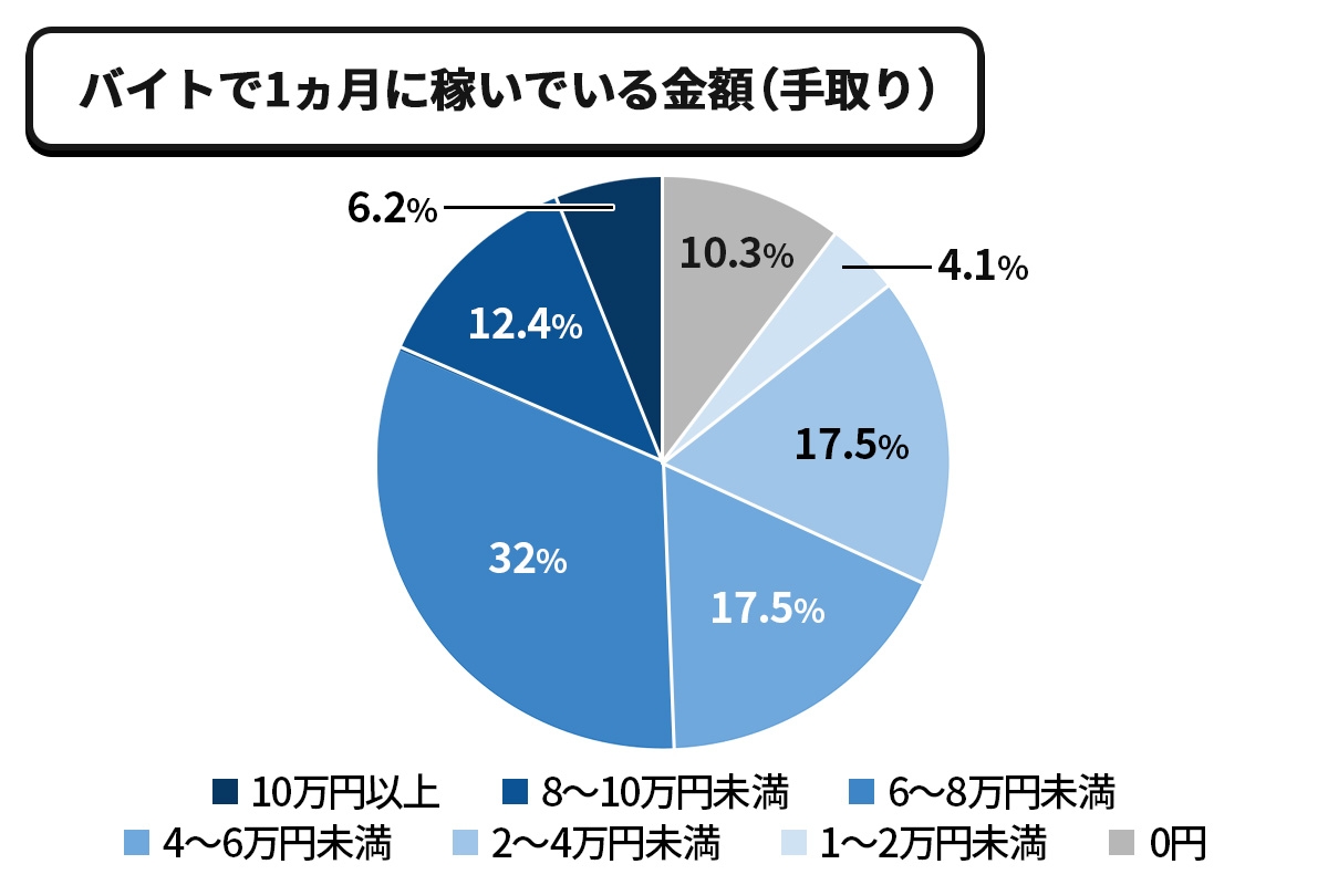 すると、全体の約半数が「4万円以上」で、多くの学生がお金を一定額稼いでいることが分かりました。