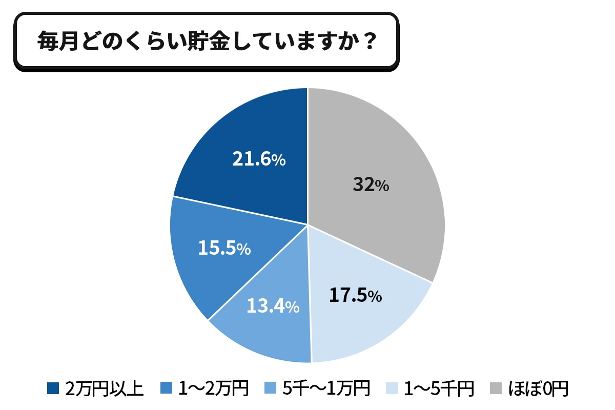 また、「毎月どのくらい貯金していますか」という質問をしたところ、約70%の人が貯金をしていることが分かりました。